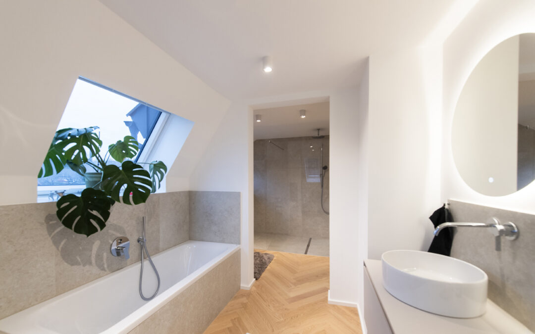 Modernisierung Reihenhaus A Unsere Aufgabe war es, in einem Reihenhaus aus dem Jahr 1960 ein zeitgemäßes Bad unterzubringen. Objektart Reihenhaus Kennzahlen KfW Einzelmaßnahmen, Baubegleitungszuschuss Ausführung 2018...